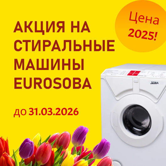 - Средний период эксплуатации стиральной машины Eurosoba составляет 20 лет.
