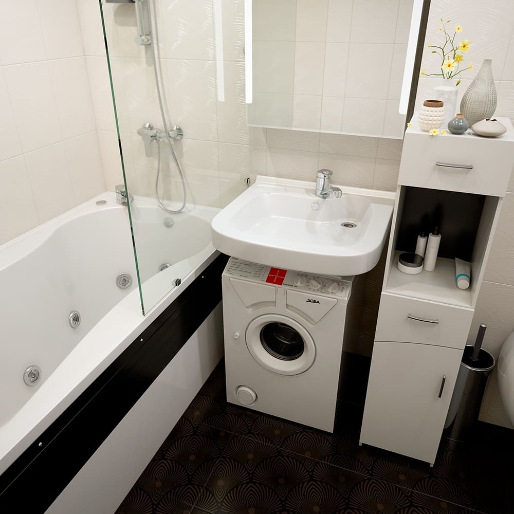 Стиральная машина Eurosoba 600 благодаря своей компактности отлично подойдет для установки под эту модель раковины. Она имеет три механических регулятора управления, загрузку до 3,5 кг и высокий класс стирки. Европейское производство делает технику Eurosoba надежной и качественной, а два года гарантии позволят не переживать о ремонте на случай неполадок.